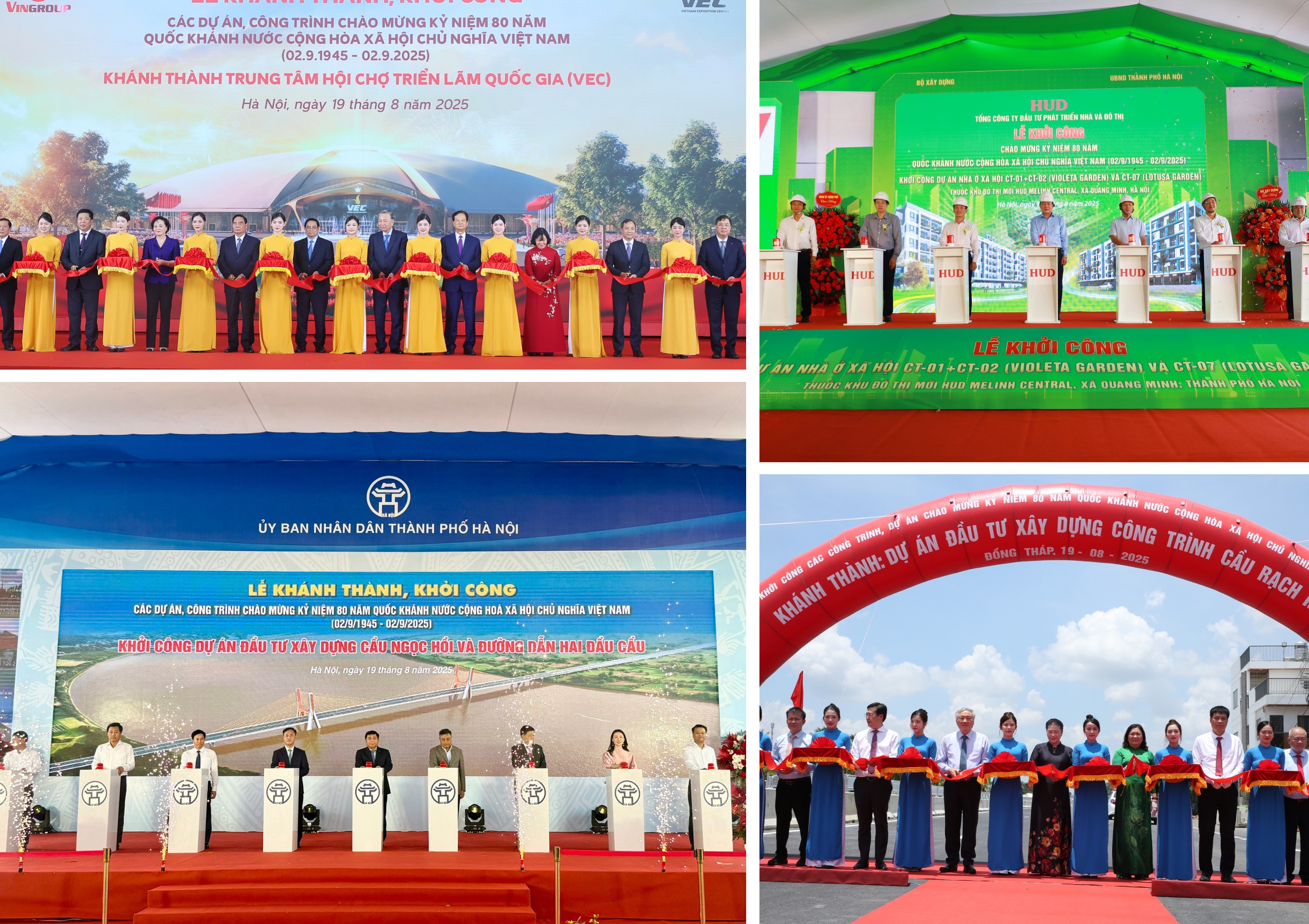 Nhân kỷ niệm 80 năm Cách mạng tháng Tám thành công và Quốc khánh nước Cộng hòa xã hội chủ nghĩa Việt Nam (02/9/1945 - 02/9/2025), ngày 19/8/2025, đồng loạt 250 công trình và dự án phủ khắp các lĩnh vực được khởi công, khánh thành trên cả nước.