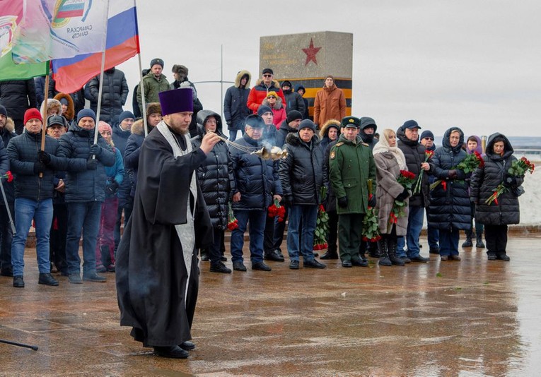 | Mọi người tham gia buổi lễ tưởng niệm các quân nhân Nga thiệt mạng trong cuộc xung đột quân sự Nga - Ukraine, một ngày sau khi Bộ Quốc phòng Nga tuyên bố rằng 63 quân nhân Nga đã thiệt mạng. Ảnh: Reuters |