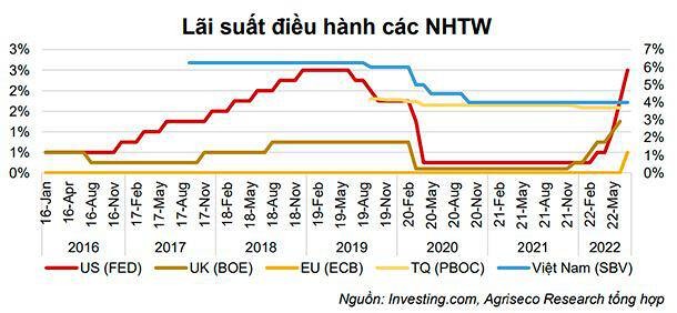 Khối phân tích Agriseco nhận định lãi suất tăng mạnh có thể làm thị trường tài chính biến động mạnh khi dòng vốn đầu tư vào thị trường chứng khoán có nguy cơ rút bớt khỏi các thị trường mới nổi và tìm đến các kênh an toàn, các khu vực có lãi suất tăng.