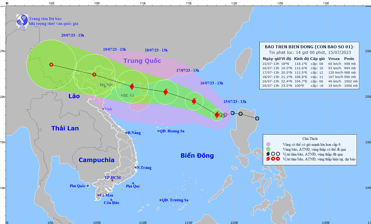 Bão số 1 sẽ đạt cường độ mạnh nhất vào ngày 17/7