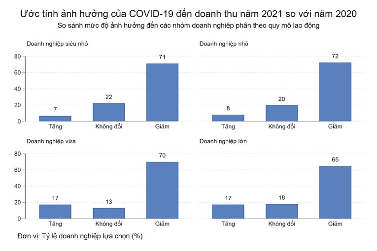 Kết quả khảo sát do Phòng Thương mại và Công nghiệp Việt Nam (VCCI) thực hiện từ tháng 7 đến giữa tháng 9/2021 với khoảng 3.000 doanh nghiệp trên toàn quốc cho thấy có tới 93,9% cho rằng dịch bệnh đã gây tác động “hoàn toàn tiêu cực” và “phần lớn là tiêu cực”. Chỉ có khoảng 4% doanh nghiệp cho biết không bị ảnh hưởng bởi dịch và chưa đến 2% doanh nghiệp cho biết nắm bắt được cơ hội để phát triển từ dịch.