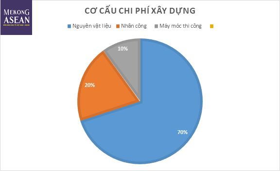 Trong khi đó, giá thép tại Việt Nam đã tăng mạnh trong năm 2020-2021 và dự báo sẽ khó giảm sâu trong năm nay do nhu cầu thép xây dựng lớn từ các dự án hạ tầng. Giá các vật liệu đầu vào khác như xi măng, cát đá , xăng cũng có mức tăng đáng kể. Chi phí nguyên vật liệu này theo ước tính chiếm khoảng 60-70% chi phí xây dựng .
