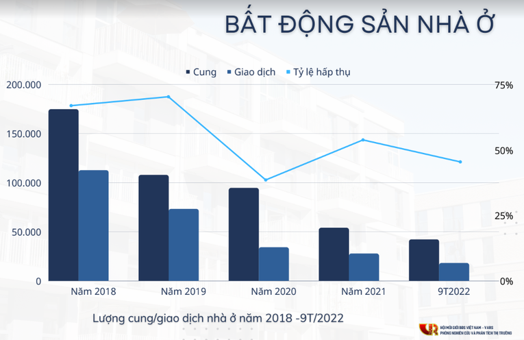 Tỷ lệ hấp thụ trong quý III/2022 chỉ đạt 33,5%, giảm mạnh so với giai đoạn nửa đầu năm; lượng giao dịch giảm hơn 50% so với cùng kỳ năm ngoái.
