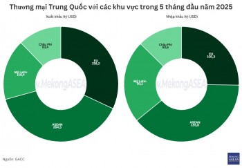 Trong 5 tháng đầu năm 2025, xuất nhập khẩu giữa Trung Quốc và ASEAN ghi nhận tăng cả về chiều xuất lẫn chiều nhập, với tổng giá trị 420 tỷ USD. |