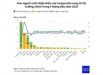 Theo báo cáo do Tổng cục Hải quan và Thuế tiêu thụ đặc biệt (GDCE) công bố ngày 10/6, tổng kim ngạch xuất nhập khẩu của Campuchia đạt 25,29 tỷ USD trong 5 tháng đầu năm 2025. |