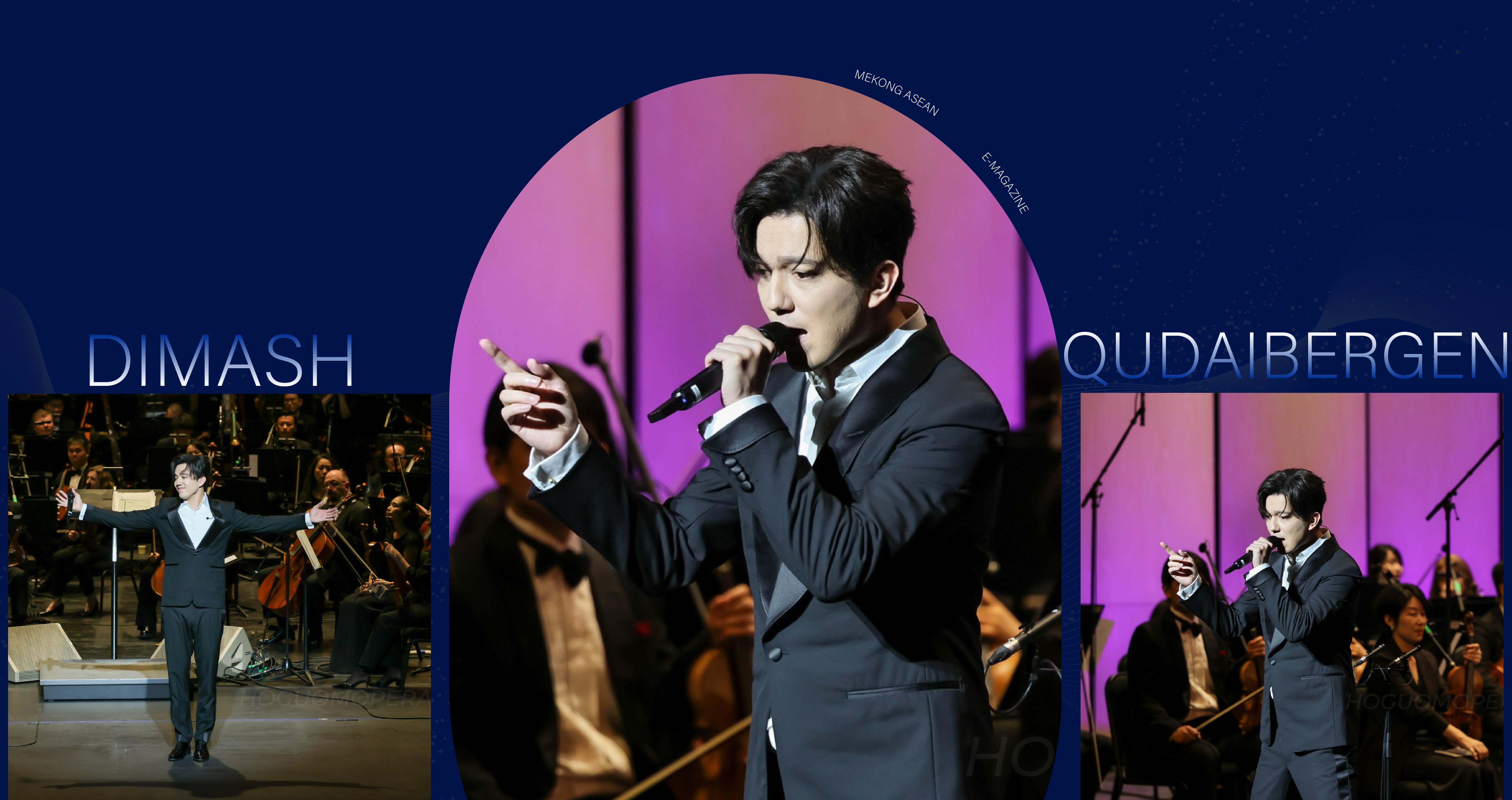 Dimash Qudaibergen, nghệ sĩ trẻ đến từ Kazakhstan, là ẩn số đặc biệt và cũng là sự mong chờ nhất của đêm nhạc này. Với chất giọng siêu hiếm trải dài hơn 6 quãng tám, anh có thể hát nốt trầm vang như một bass, lướt lên cao như một soprano, và đặc biệt làm chủ giọng pha và giọng giả thanh ở mức hiếm có. Đây là khả năng rất ít ca sĩ, kể cả trong giới opera, có được. Dimash xuất hiện bùng nổ với S.O.S D'un Terrien En Detresse ở ngay tiết mục đầu tiên của đêm nhạc khiến khán giả vô cùng phấn khích. Dù hát cùng ban nhạc nhẹ hay Dàn nhạc Giao hưởng mặt trời thì kỹ thuật và quãng giọng của Dimash thật choáng ngợp.