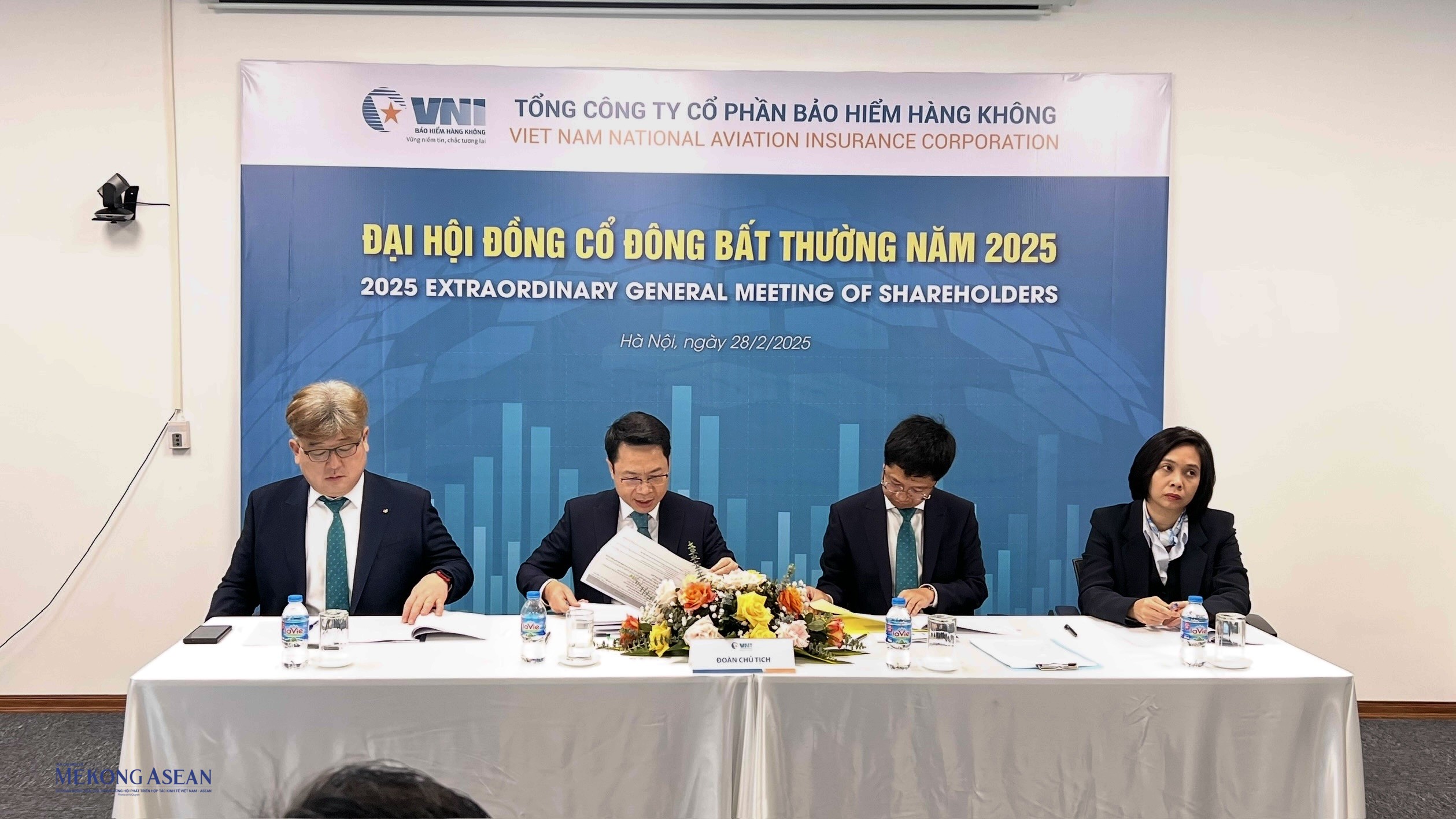 | Chủ tịch HĐQT Lê Tuấn Dũng (thứ 2 từ trái sang) cùng Thành viên HĐQT Kim Jong Uk (trái), Tổng giám đốc Nghiêm Xuân Thái (phải) và Thành viên HĐQT Nguyễn Diệu Trinh chủ trì đại hội bất thường ngày 28/2. |
