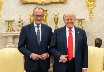 “Đây là giấy khai sinh của ông nội Tổng thống Donald Trump. Tên ông ấy là Friedrich. Ông sinh năm 1869, gần Brandenburg,” Thủ tướng Đức chia sẻ về món quà. Tổng thống Mỹ Donald Trump bắt tay ông Merz cảm kích đáp: “Tôi muốn cảm ơn ông rất nhiều vì món quà này. Thật tuyệt vời. Chúng tôi sẽ tìm một chỗ phù hợp để treo nó".