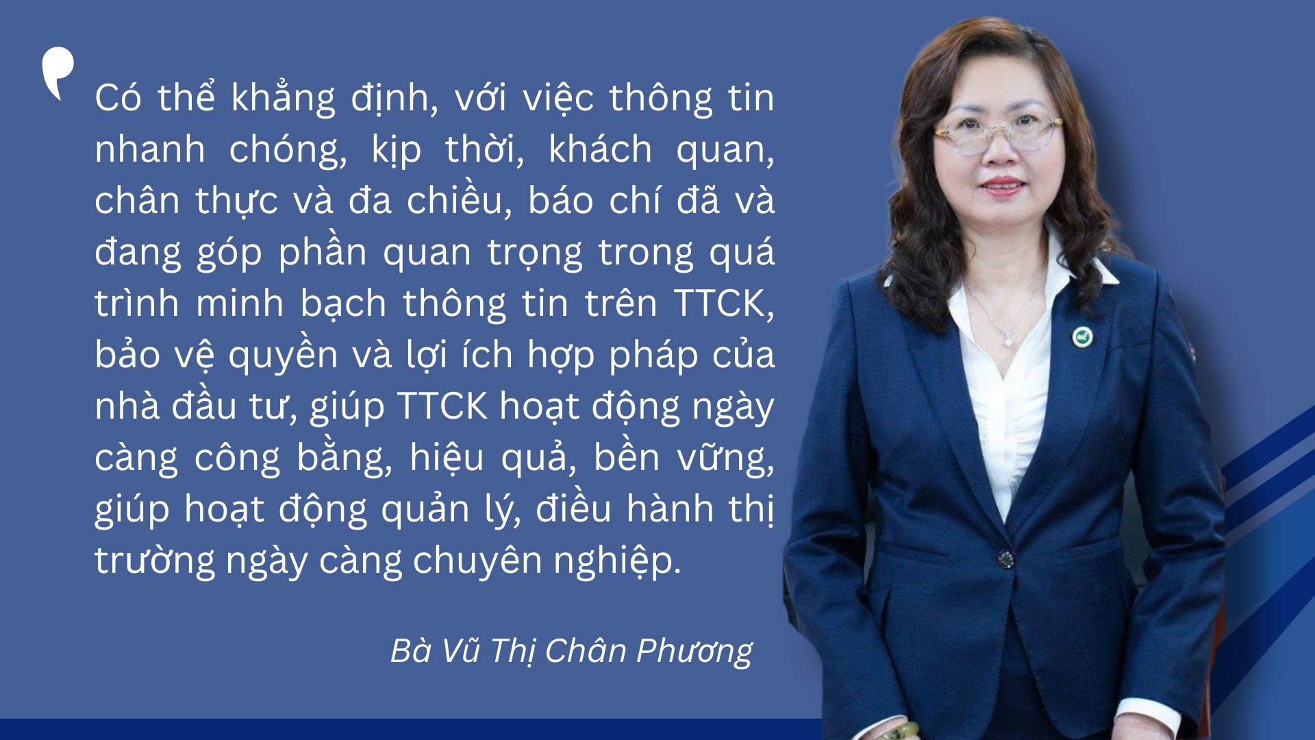 Các cơ quan thông tấn, báo chí không chỉ đóng vai trò quan trọng giúp cơ quan quản lý Nhà nước truyền thông chính sách, hỗ trợ TTCK phát triển, mà còn là cầu nối giữa cơ quan quản lý với thành viên thị trường và nhà đầu tư. Dòng chảy thông tin tích cực từ các cơ quan thông tấn, báo chí là minh chứng cho thấy sự hỗ trợ hiệu quả để truyền tải chủ trương, thông điệp, chính sách và hoạt động từ cơ quan quản lý đến thị trường.