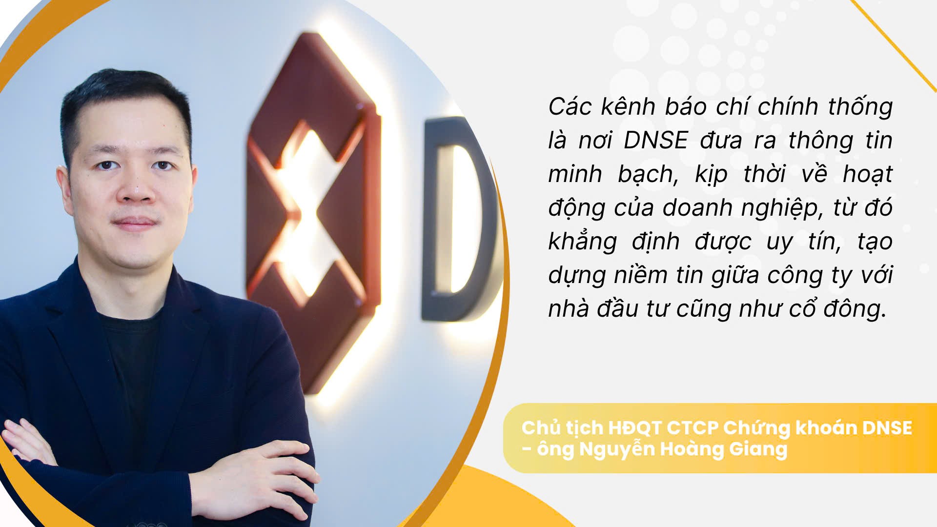 Các kênh báo chí chính thống là nơi DNSE đưa ra thông tin minh bạch, kịp thời về hoạt động của doanh nghiệp, từ đó khẳng định được uy tín, tạo dựng niềm tin giữa công ty với nhà đầu tư cũng như cổ đông.