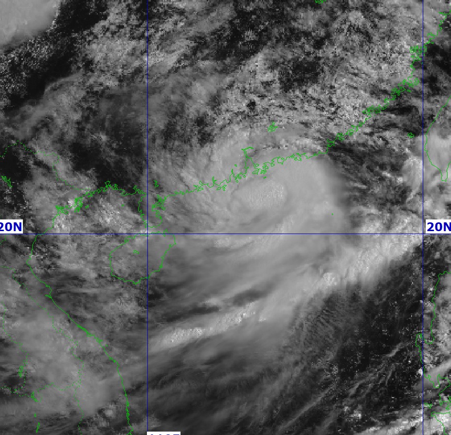| Hiện trạng bão số 3 lúc 9h sáng 20/7. Ảnh: Trung tâm dự báo khí tượng thủy văn quốc gia. |