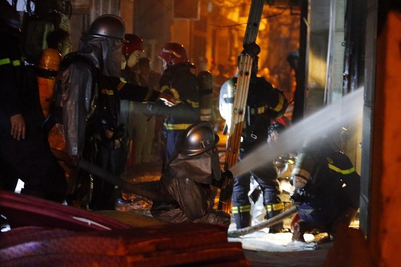 15 xe cứu hỏa cùng khoảng 100 cảnh sát đã tới hiện trường 10 phút sau đó. Tuy nhiên, chung cư nằm sâu trong ngõ chỉ rộng 3 m nên xe cứu hỏa không thể tiếp cận. Cảnh sát phải đưa vòi rồng vào hiện trường từ xa. Sau 45 phút xảy ra hỏa hoạn, đám cháy cơ bản được khống chế.