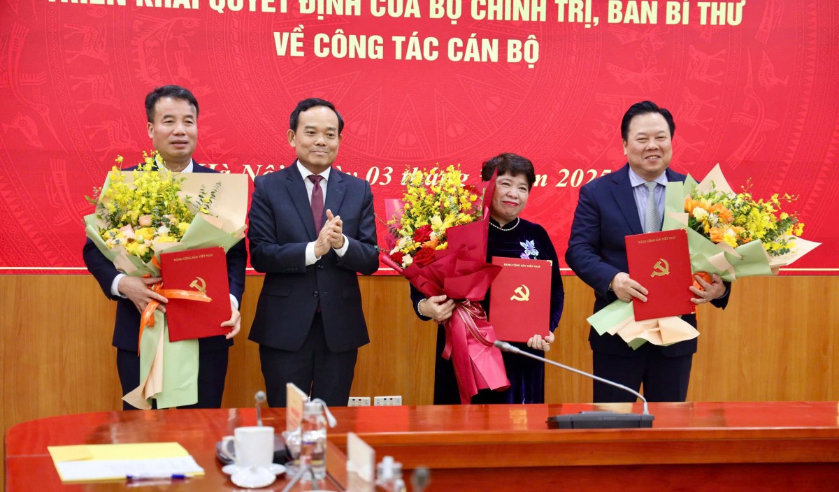Tại hội nghị, đại diện Ban Tổ chức Trung ương đã công bố quyết định của Bộ Chính trị về việc điều động, phân công, bổ nhiệm các ông Nguyễn Hoàng Anh, Nguyên Chủ tịch Ủy ban Quản lý vốn Nhà nước tại doanh nghiệp; bà Nguyễn Thúy Anh, Nguyên Chủ nhiệm Ủy ban Xã hội của Quốc hội khóa XV và quyết định của Ban Bí thư về việc điều động, bổ nhiệm ông Nguyễn Thế Mạnh, Tổng giám đốc Bảo hiểm Xã hội Việt Nam giữ chức vụ Phó Trưởng Ban Chính sách, chiến lược Trung ương.