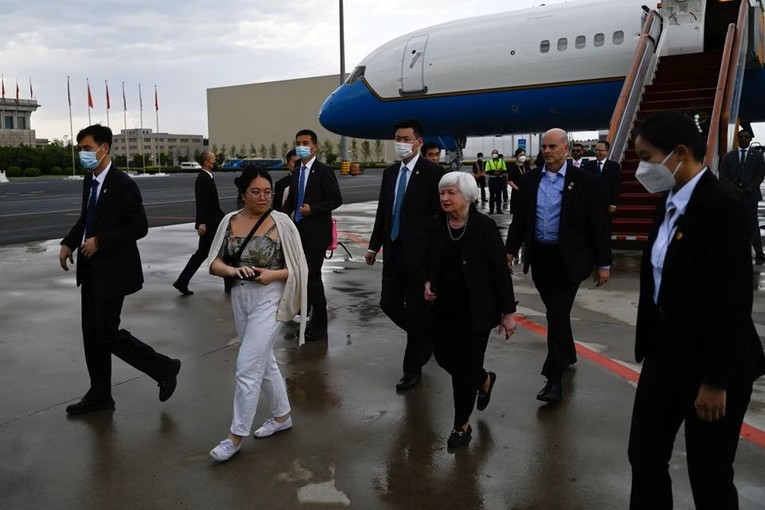 | Bộ trưởng Tài chính Mỹ Janet Yellen tại Sân bay Quốc tế Thủ đô Bắc Kinh ở Bắc Kinh, Trung Quốc ngày 6/7/2023. Ảnh: Reuters |