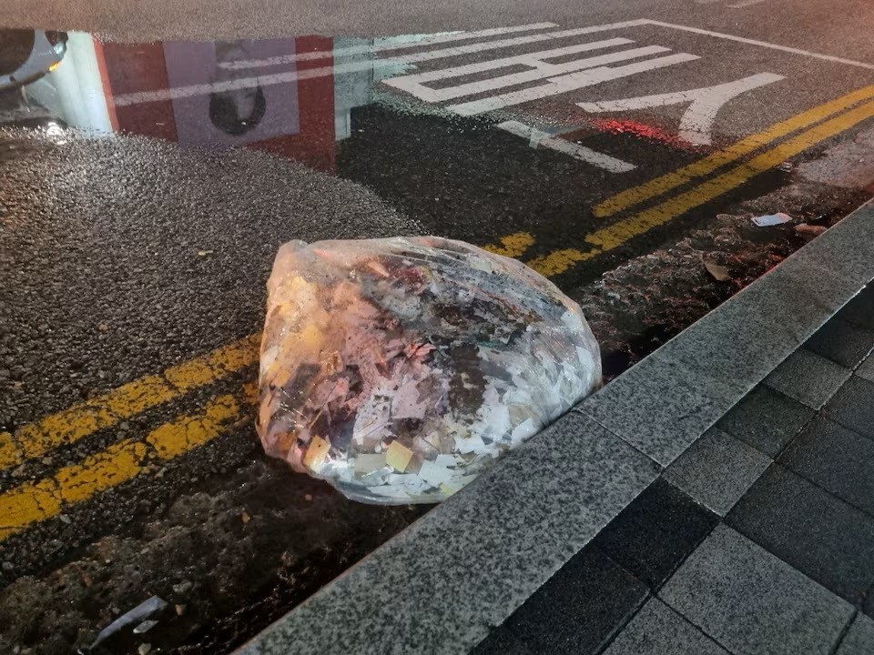 | Bóng bay chở rác rơi xuống Seoul, Hàn Quốc ngày 2/6/2024. Ảnh: Bộ Quốc phòng Hàn Quốc |