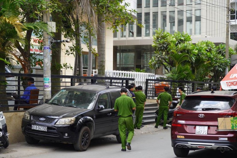 Cùng thời điểm, lực lượng cảnh sát cơ động, hình sự... cũng phong toả, kiểm tra Công ty mua bán nợ Galaxy tại chung cư trên đường D1 (phường Linh Tây, TP Thủ Đức).
