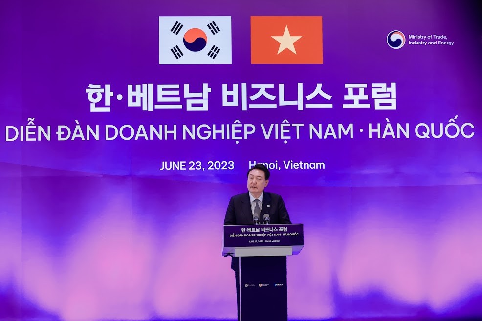 Tại Diễn đàn doanh nghiệp Việt Nam - Hàn Quốc 2023 chiều ngày 23/6, Tổng thống Hàn Quốc Yoon Suk Yeol bày tỏ hy vọng quan hệ Hàn Quốc - Việt Nam sẽ trở thành mẫu mực trên thế giới. Do đó, hai nước cần nâng tầm mối quan hệ này hơn nữa. Trong tương lai, các lĩnh vực văn hoá, giao lưu nhân dân, thương mại, đầu tư giữa hai nước sẽ đều được mở rộng mạnh mẽ.