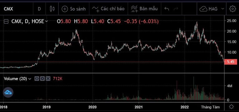 | Diễn biến giá cổ phiếu CMX. Ảnh: SSI |