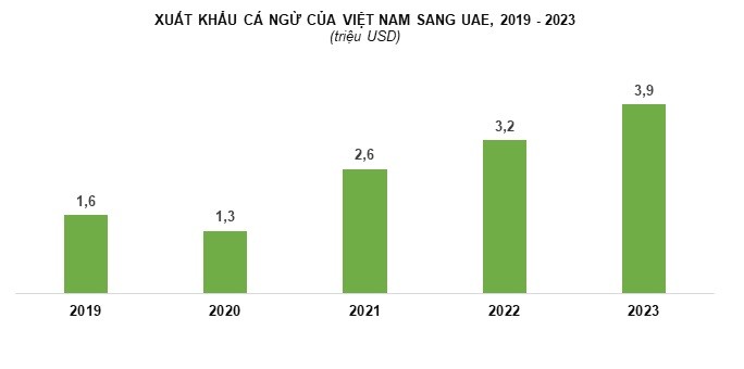Theo Tổng cục Hải quan Việt Nam, kim ngạch xuất khẩu cá ngừ của Việt Nam sang UAE ghi nhận tăng từ 1,6 triệu USD năm 2019 lên gần 4 triệu USD năm 2023, tăng 139% trong 5 năm. Việt Nam hiện là một trong ba nguồn cung cá ngừ lớn nhất cho thị trường này.