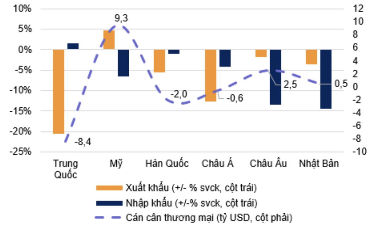 | Hoạt động thương mại tháng 1/2025 của Việt Nam với các đối tác thương mại lớn. Nguồn: VNDirect |