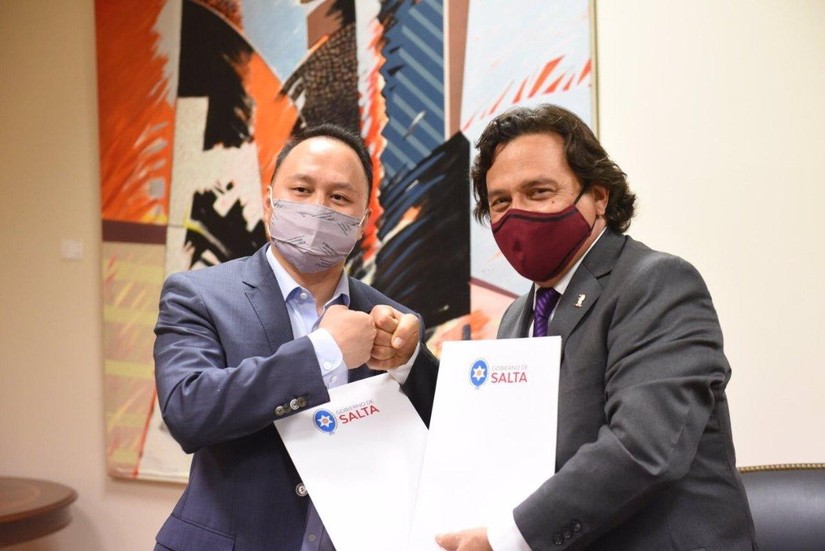 | Thống đốc tỉnh Salta (Argentina) Gustavo Sáenz, và chủ tịch Ganfeng Jason Luo |
