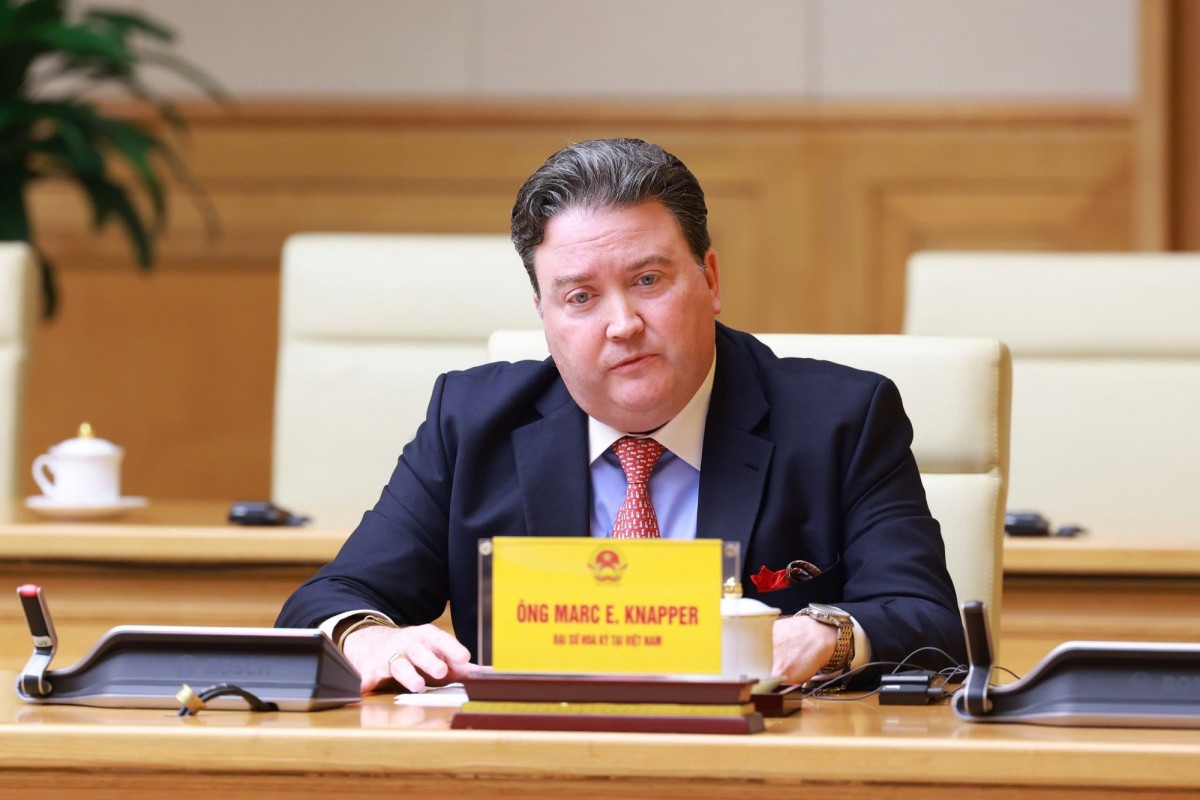 Cảm ơn sự ghi nhận và đánh giá cao của Thủ tướng Chính phủ, Đại sứ Hoa Kỳ Marc Knapper cam kết sẽ tiếp tục phối hợp chặt chẽ với các Bộ, ngành Việt Nam để thúc đẩy và làm sâu sắc hơn nữa quan hệ Đối tác chiến lược toàn diện Việt Nam - Hoa Kỳ.