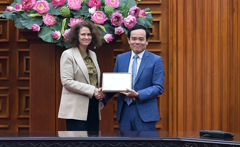 | Phó Thủ tướng Trần Lưu Quang và Giám đốc Quốc gia Ngân hàng Thế giới (WB) tại Việt Nam Carolyn Turk. Ảnh: VGP. |