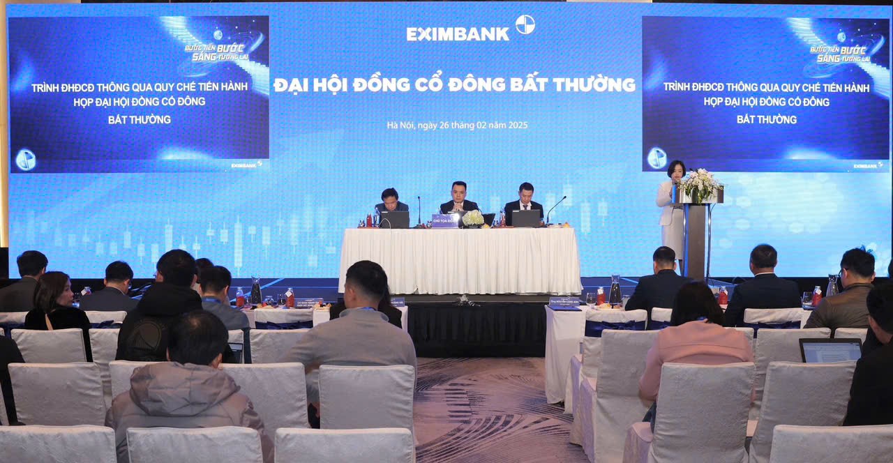Đại hội đồng cổ đông bất thường năm 2025 của Ngân hàng TMCP Xuất nhập khẩu Việt Nam (Eximbank – HOSE: EIB) được tổ chức thành công vào ngày 26/2 tại Khách sạn JW Marriott Hà Nội, quận Nam Từ Liêm, TP Hà Nội.