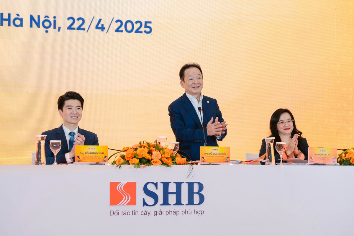 Phát biểu khai mạc, Chủ tịch HĐQT SHB Đỗ Quang Hiển bày tỏ sự trân trọng trước tinh thần đồng hành của đông đảo cổ đông. Ông cho rằng sự góp mặt đông đủ tại đại hội là minh chứng cho niềm tin, sự gắn bó và kỳ vọng cổ đông dành cho SHB. "Chúc các cổ đông của SHB đầu tư đâu - trúng đó," ông Hiển nói vui nhưng cũng đầy tự tin về triển vọng ngân hàng trong năm 2025.