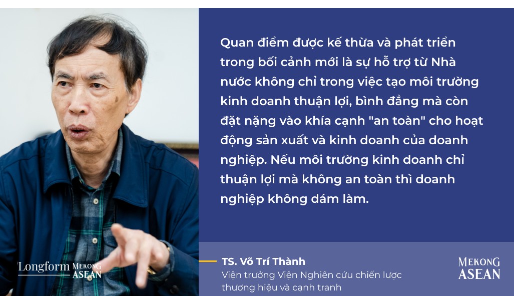 Theo chuyên gia Võ Trí Thành, kinh nghiệm thế giới cho thấy, hầu hết các quốc gia thực hiện công nghiệp hóa thành công đều có vai trò của hệ thống doanh nghiệp, đặc biệt là những doanh nghiệp “đầu tàu” hay “sếu đầu đàn”, tạo ra hệ sinh thái dẫn dắt sự phát triển của các doanh nghiệp nhỏ và vừa. Việt Nam cũng đã có những doanh nghiệp tư nhân có quy mô lớn cả về vốn và công nghệ cao như Vingroup, FPT, T&T Group, Thaco, Vietjet, Vinamilk, TH… ghi dấu ấn ở thị trường trong nước mà cả ở thị trường khu vực và quốc tế.