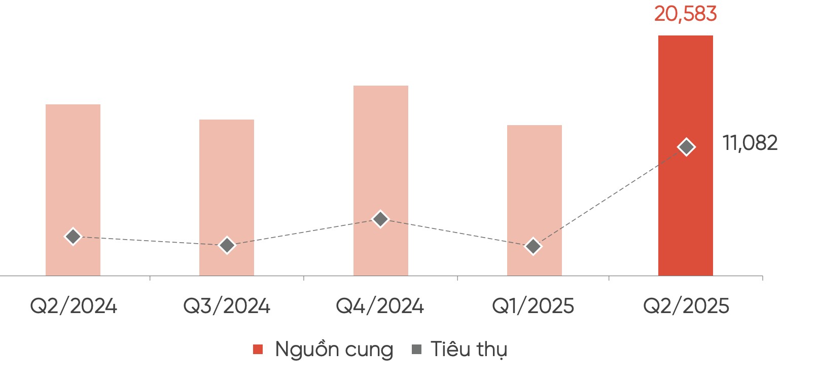 | Nguồn cung và tiêu thụ sơ cấp tại khu vực phía Nam (căn). Nguồn: DKRA |