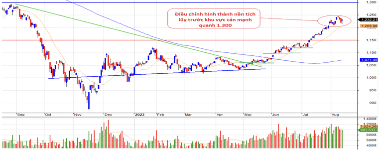 Với tín hiệu hiện tại, VDSC cho rằng có khả năng thị trường sẽ tiếp tục được hỗ trợ khi lùi bước và có cơ hội dần hồi phục đến vùng 1.240 – 1.245 điểm. Tạm thời diễn biến hồi phục này sẽ mang tính chất kiểm tra lại nguồn cung tại vùng cản. Do vậy, nhà đầu tư cần quan sát và đánh giá nỗ lực hỗ trợ của dòng tiền trong thời gian tới.