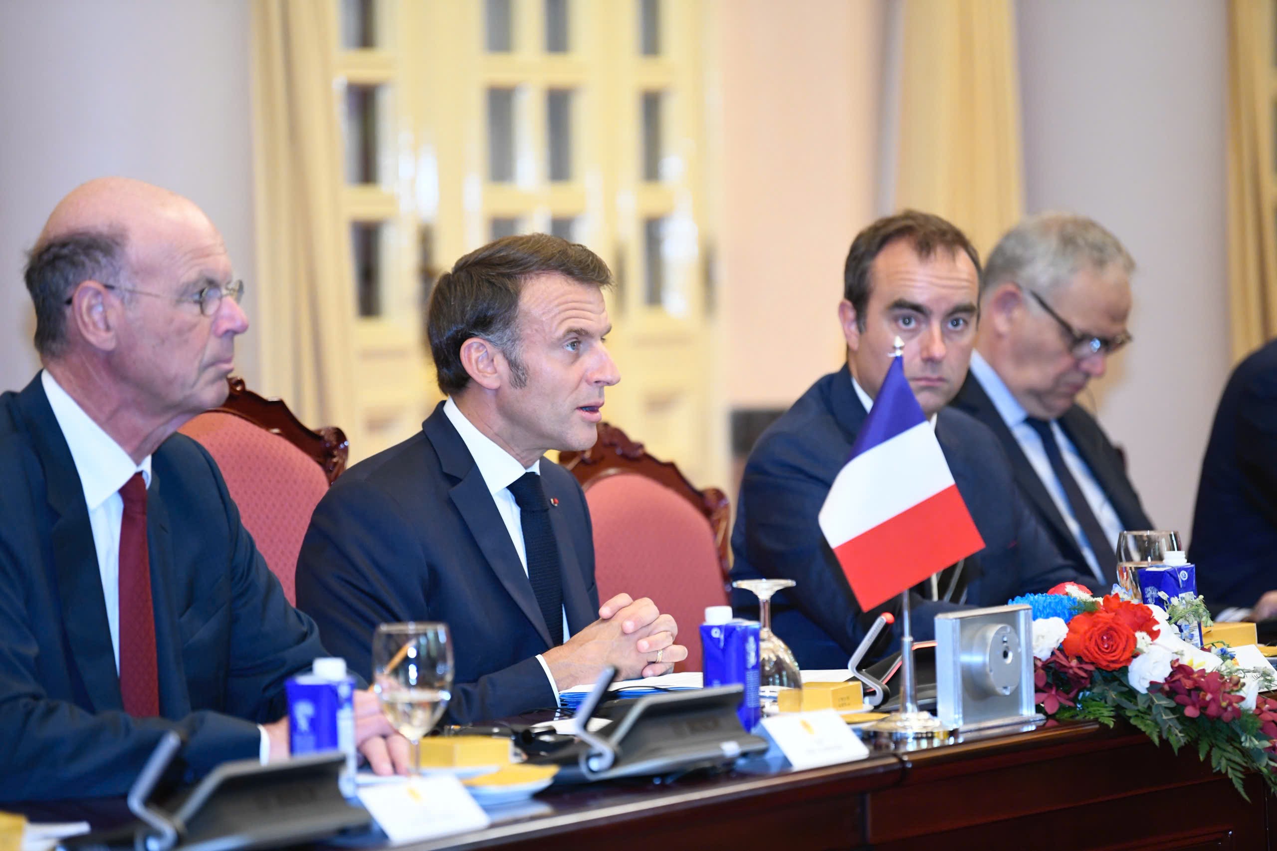 Tổng thống Macron khẳng định, Pháp mong muốn cùng Việt Nam tiếp tục tăng cường hợp tác trên các lĩnh vực truyền thống, đặc biệt là y tế, giáo dục, văn hóa và mở rộng trên các lĩnh vực hợp tác mới như hạ tầng cơ sở, giao thông đô thị, hàng không vũ trụ, năng lượng mới, ký ức lịch sử…, tương xứng với quan hệ Đối tác Chiến lược toàn diện hiện nay.