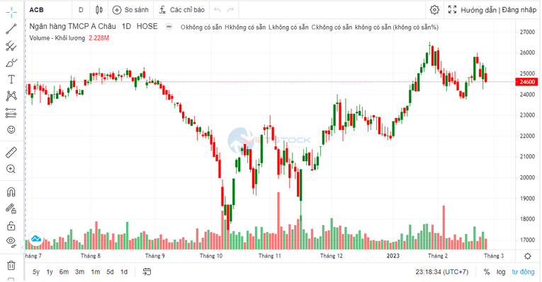 Trên thị trường chứng khoán, cổ phiếu ACB đóng cửa phiên giao dịch ngày 24/2/2023 ở mức 24.600 đồng/cổ phiếu. Ước tính với mức giá này, bà Vân sẽ thu về hơn 6,1 tỷ đồng nếu giao dịch lần này diễn ra thành công.