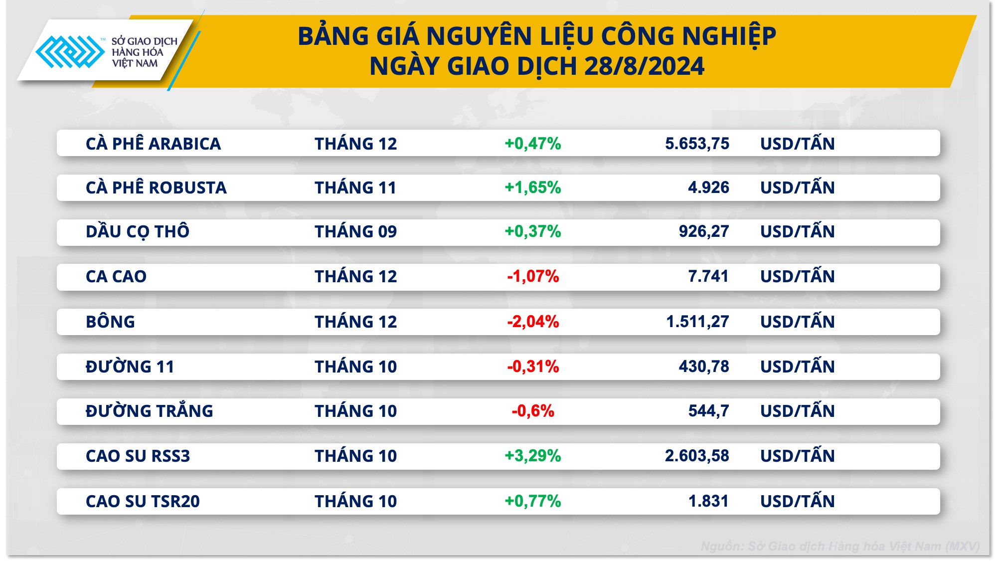 Trên thị trường nguyên liệu công nghiệp, giá đường thô quay đầu giảm 0,41% tại phiên hôm qua (28/8) sau 5 phiên tăng liên tiếp. Dẫn nguồn tin từ Tập đoàn công nghiệp mía đường UNICA, MXV cho biết, lượng đường nửa đầu tháng 8 tại vùng sản xuất mía lớn nhất của Brazil đạt 3,11 triệu tấn, giảm 10,2% so với cùng kỳ năm 2023.