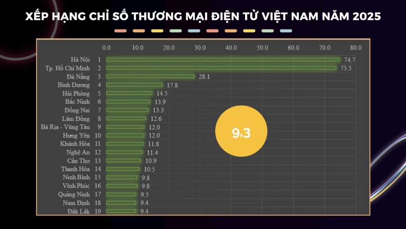 | Bảng xếp hạng chỉ số thương mại điện tử Việt Nam (EBI) năm 2025. |