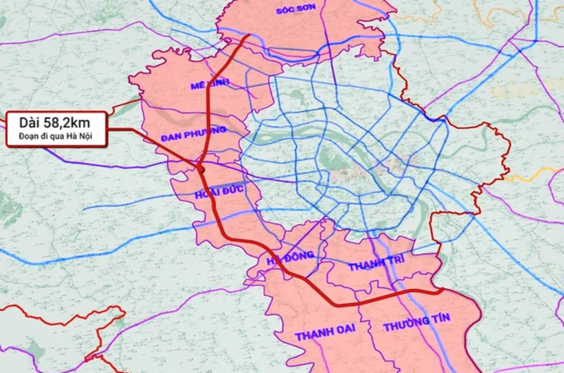 Các nội dung điều chỉnh cụ thể: Về quy mô mặt cắt ngang sẽ giữ nguyên quy mô mặt cắt ngang đường điển hình là 120m, điều chỉnh cấu tạo thành phần mặt cắt ngang đường gồm 90m bố trí các thành phần đường bộ cao tốc, đường gom đô thị song hành và 30m dự trữ bố trí tuyến đường sắt quốc gia vành đai; không xác định thành phần đê sông Đáy mới.