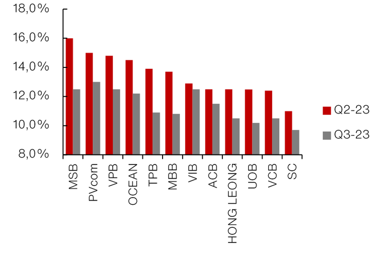 | Lãi suất thế chấp tại các ngân hàng ở Việt Nam. Nguồn: VinaCapital |