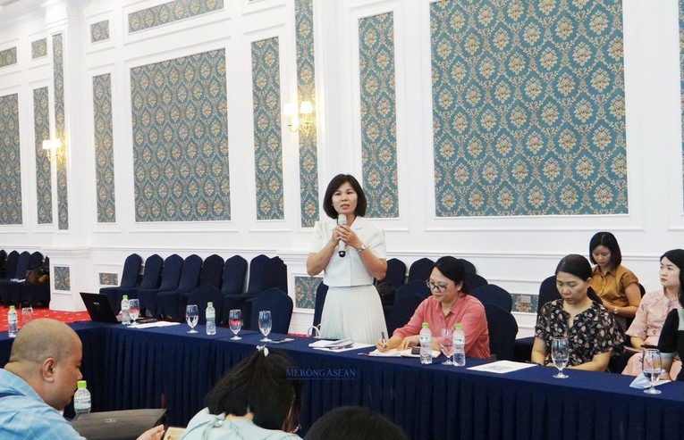 | Bà Hoàng Thị Thúy, Giám đốc Công ty TNHH Du lịch quốc tế Dòng Chảy Việt phát biểu. |