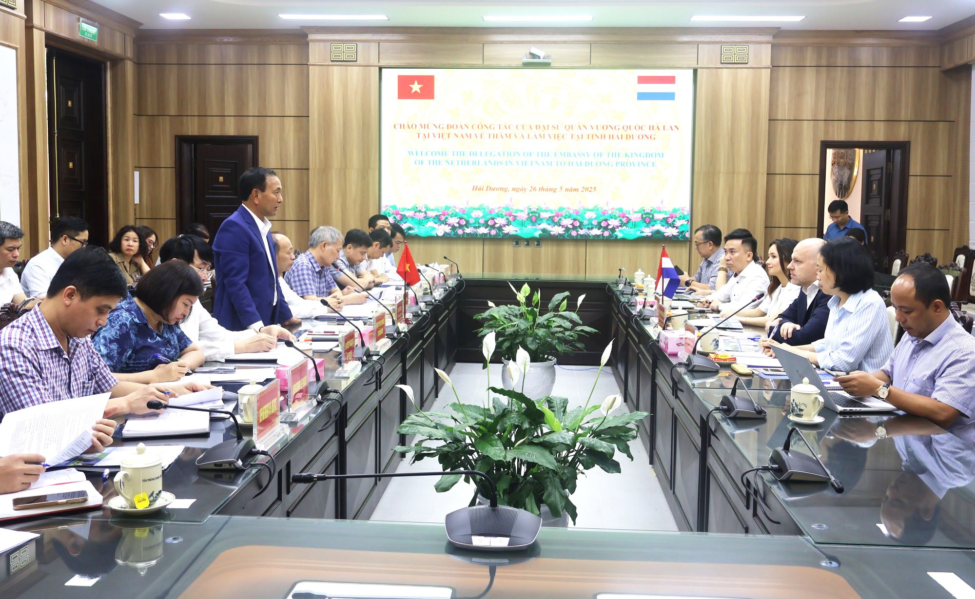 Phó Chủ tịch Thường trực UBND tỉnh Hải Dương nhấn mạnh, ngay sau khi nhận được Công hàm số HAN/2025/072 ngày 12/5/2025 của Đại sứ quán Hà Lan đề nghị cung cấp hồ sơ dự án, UBND tỉnh Hải Dương đã khẩn trương hoàn thiện và chính thức gửi kế hoạch dự án, dự thảo Thỏa thuận tài trợ và văn bản xác nhận điều kiện tham gia đấu thầu của đơn vị lập báo cáo nghiên cứu khả thi đến Đại sứ quán Hà Lan.