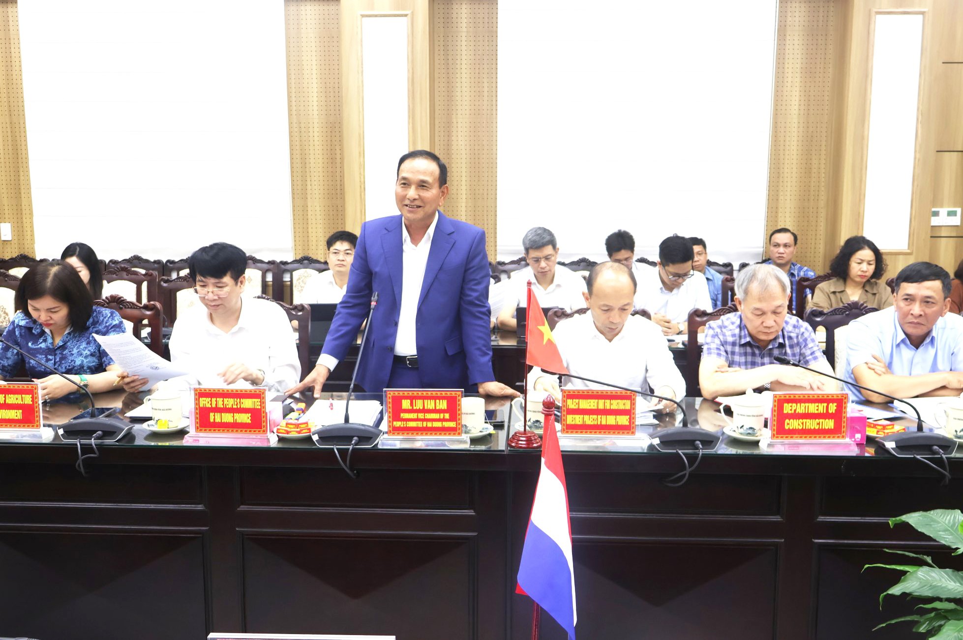 Phát biểu tại buổi làm việc, ông Lưu Văn Bản, Phó Chủ tịch Thường trực UBND tỉnh Hải Dương khẳng định đây là dịp để hai bên rà soát tình hình triển khai dự án hợp tác sử dụng viện trợ không hoàn lại từ Chính phủ Hà Lan, là cơ hội quan trọng để làm sâu sắc hơn mối quan hệ đối tác giữa tỉnh Hải Dương và các cơ quan hữu trách của Hà Lan - quốc gia có nền tảng kỹ thuật, kinh nghiệm và công nghệ tiên tiến hàng đầu thế giới trong lĩnh vực xử lý nước và môi trường đô thị.