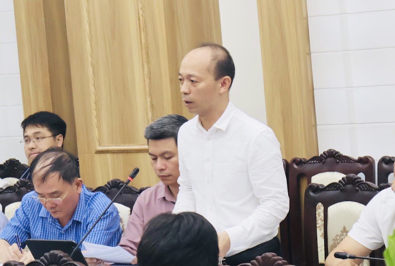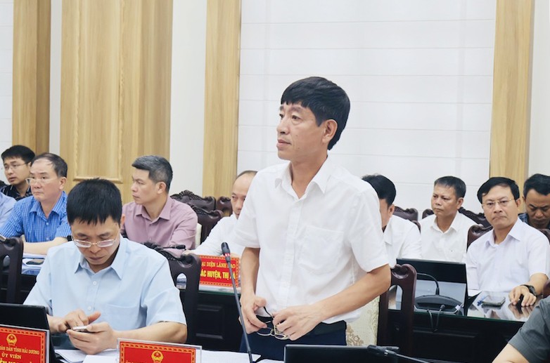 | Giám đốc Sở Xây dựng tỉnh Hải Dương Nguyễn Hoài Long phát biểu tại phiên họp. |