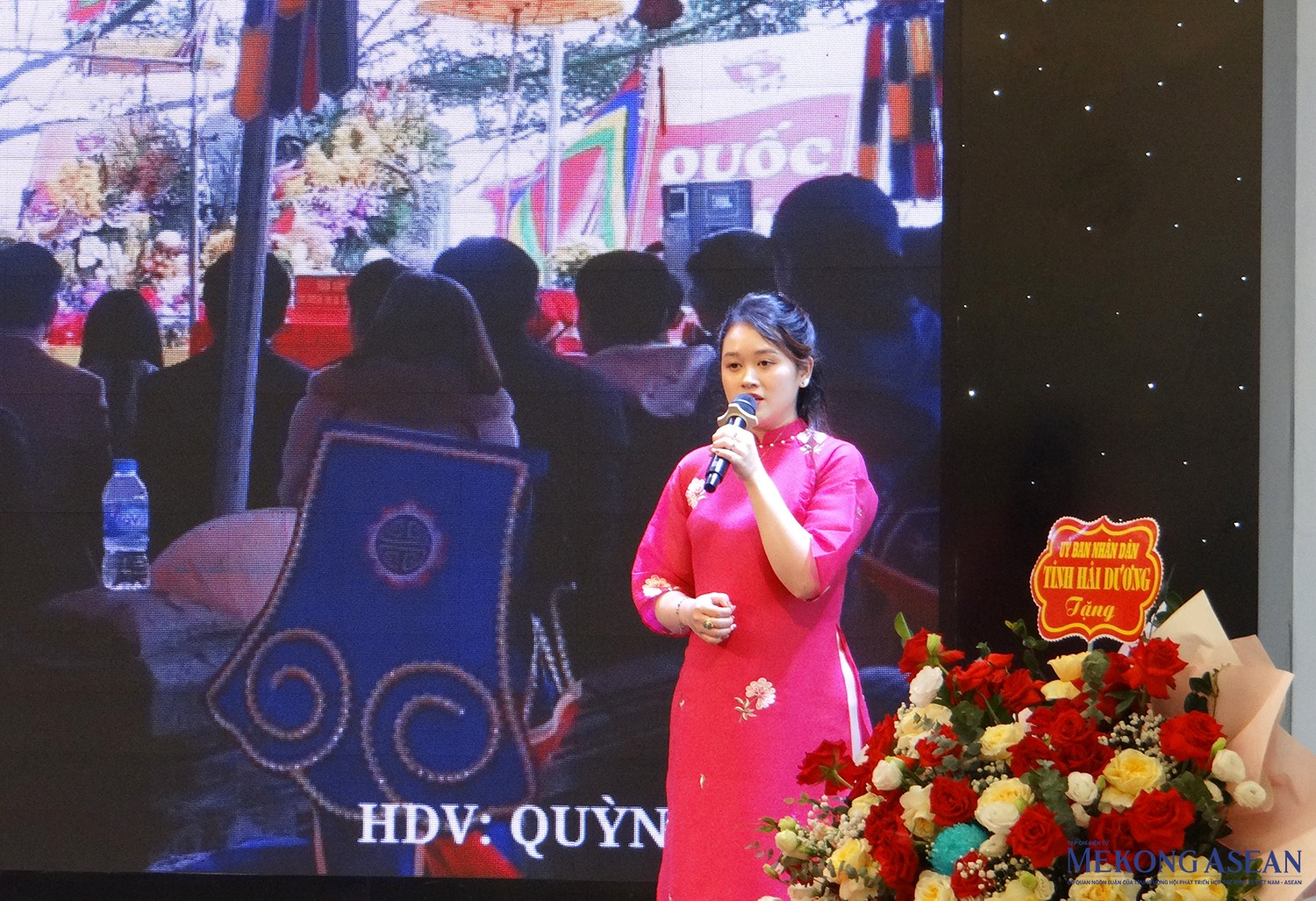 | Phần thi thuyết minh của thí sinh đến từ Ban Quản lý di tích thị xã Kinh Môn. |