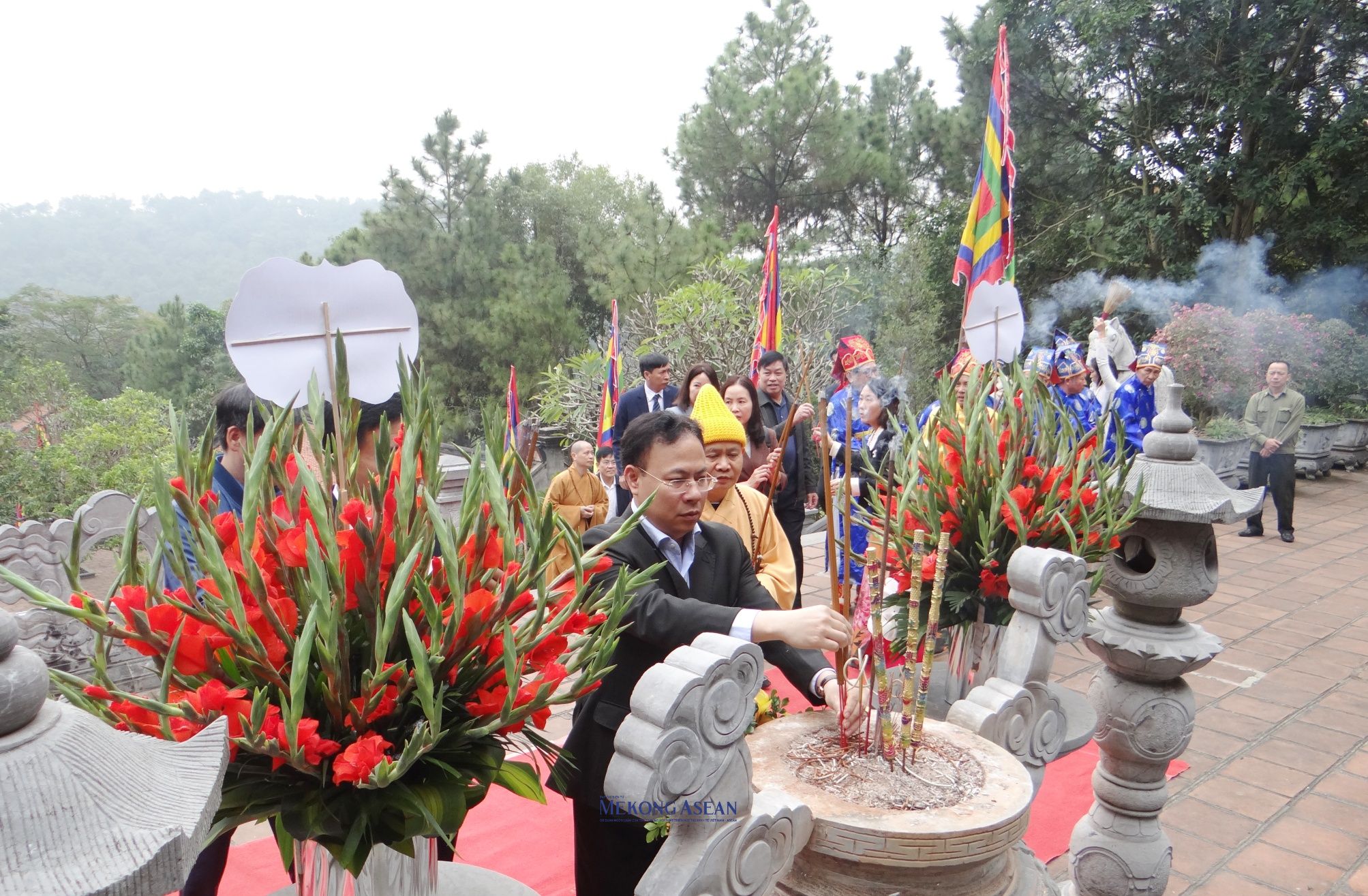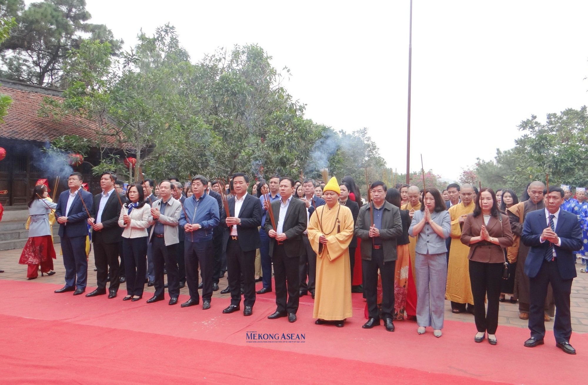 | Lãnh đạo thành phố Chí Linh và các đại biểu dâng hương tưởng niệm 653 năm ngày mất của Vạn thế sư biểu, Danh nhân Chu Văn An. |
