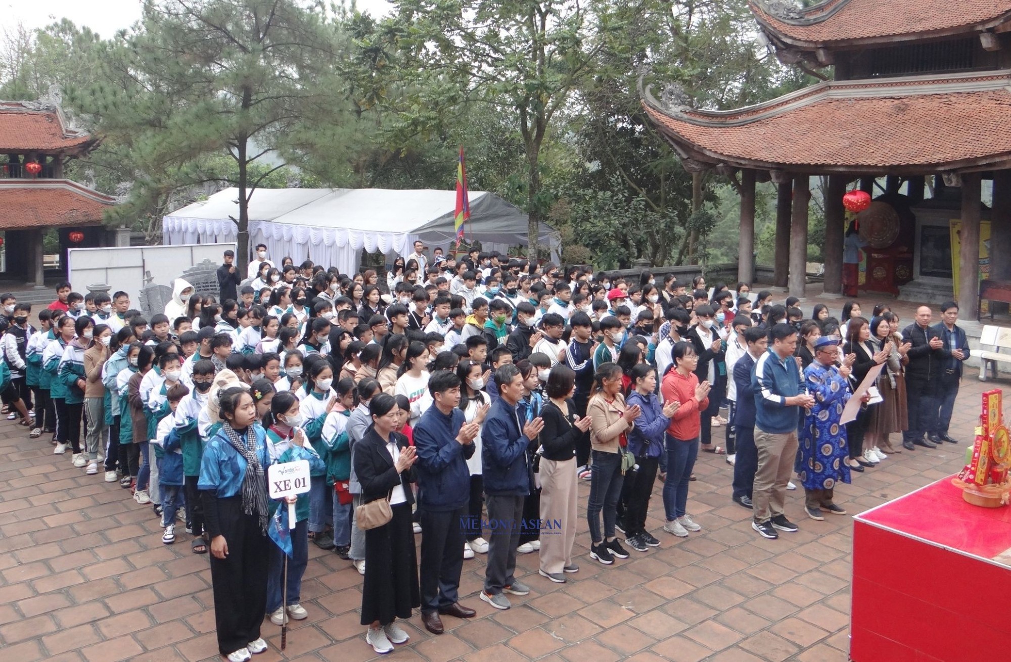 | Đại diện các nhà trường và các em học sinh, sinh viên về dự lễ dâng hương tại đền thờ thầy Chu Văn An. |