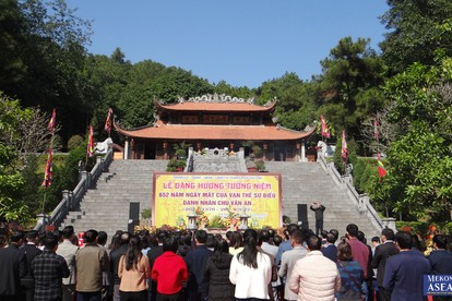 | Nhân dân và du khách thập phương dâng hương tại đền thờ thầy Chu Văn An. |