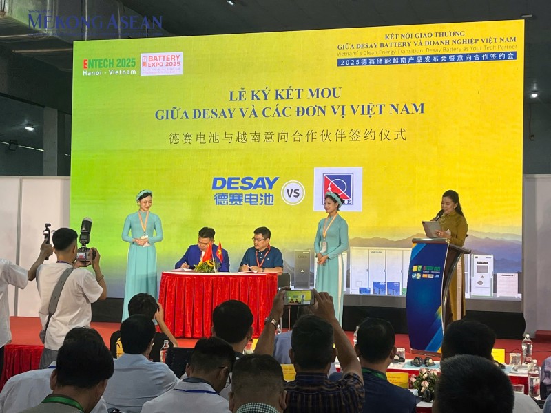 | Tập đoàn Desay Battery (Trung Quốc) đã ký kết Biên bản ghi nhớ với các một số doanh nghiệp, đơn vị tiêu biểu trong ngành năng lượng tại Việt Nam trong khuôn khổ hội thảo. Ảnh: Thu Thảo/Mekong ASEAN. |