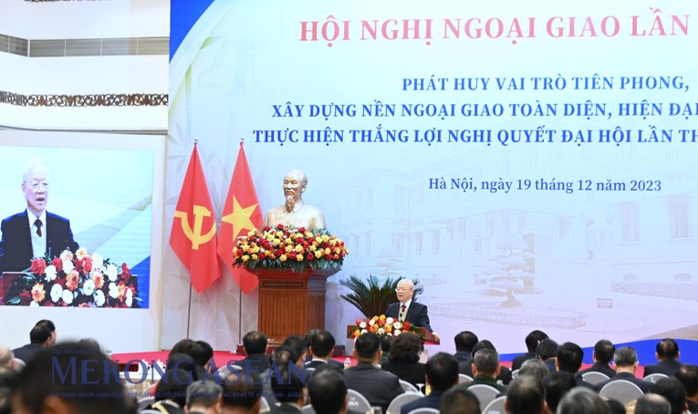 | Tổng Bí thư Nguyễn Phú Trọng phát biểu tại Hội nghị Ngoại giao lần thứ 32, sáng 19/12. Ảnh: Đỗ Thảo - Mekong ASEAN |