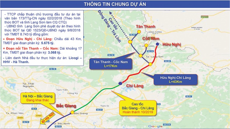 | Sơ đồ đoạn tuyến cao tốc Hữu Nghị - Chi Lăng và đoạn nối Tân Thanh - Cốc Nam. |