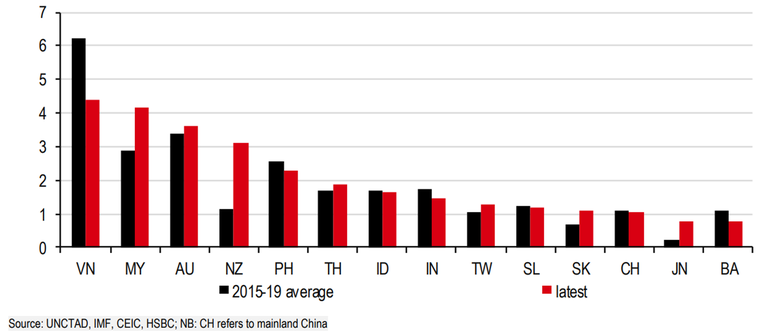 Báo cáo của HSBC cũng cho thấy, dòng vốn đầu tư có xu hướng chảy đặc biệt nhiều vào các quốc gia gồm Việt Nam, Malaysia, Australia và New Zealand, trong khi đổ ít hơn vào Hàn Quốc, Trung Quốc đại lục và Nhật Bản.